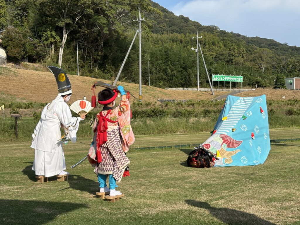 レジェンドグラウンドゴルフ場にも、地域の秋祭りの神輿や獅子舞が訪れ、にぎやかで華やかな雰囲気に包まれました。